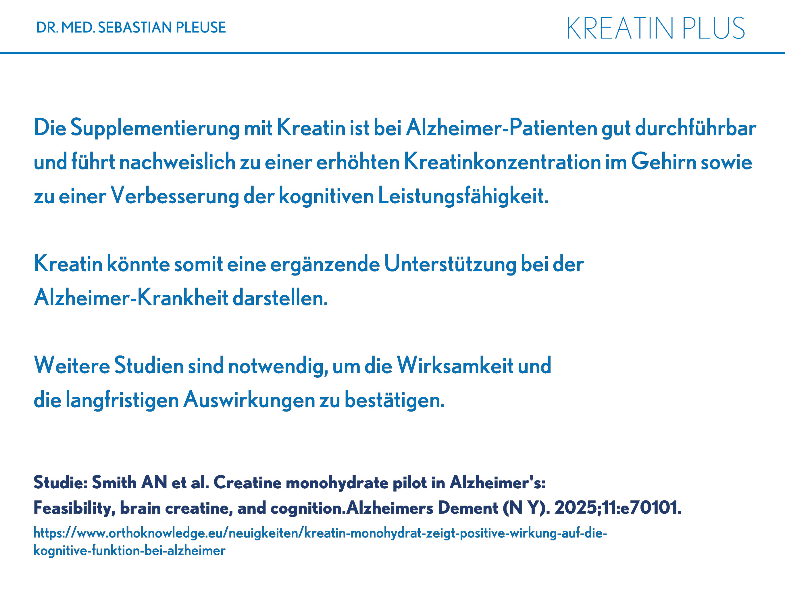 Kreatin trägt zur Steigerung der körperlichen Leistung bei Schnellkrafttraining im Rahmen kurzzeitiger, intensiver körperlicher Belastung bei. Eine tägliche Einnahme von 3 Gramm ist ausreichend, um diesen Effekt zu erzielen.