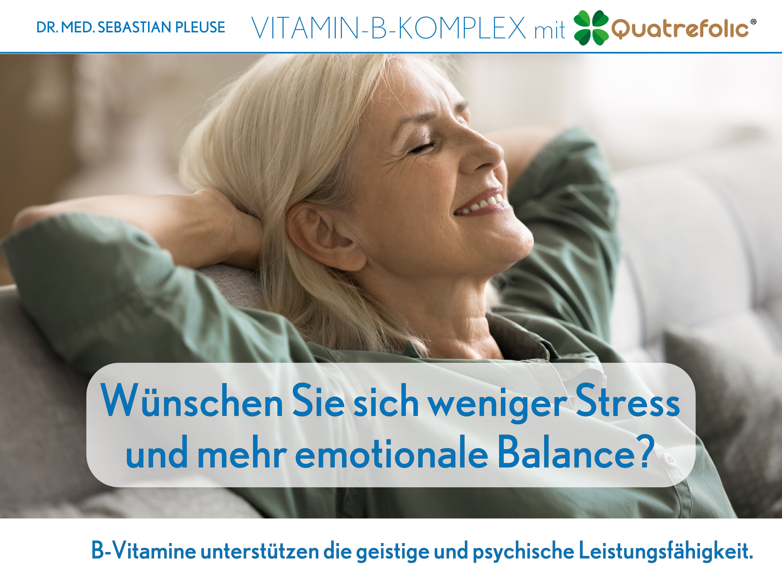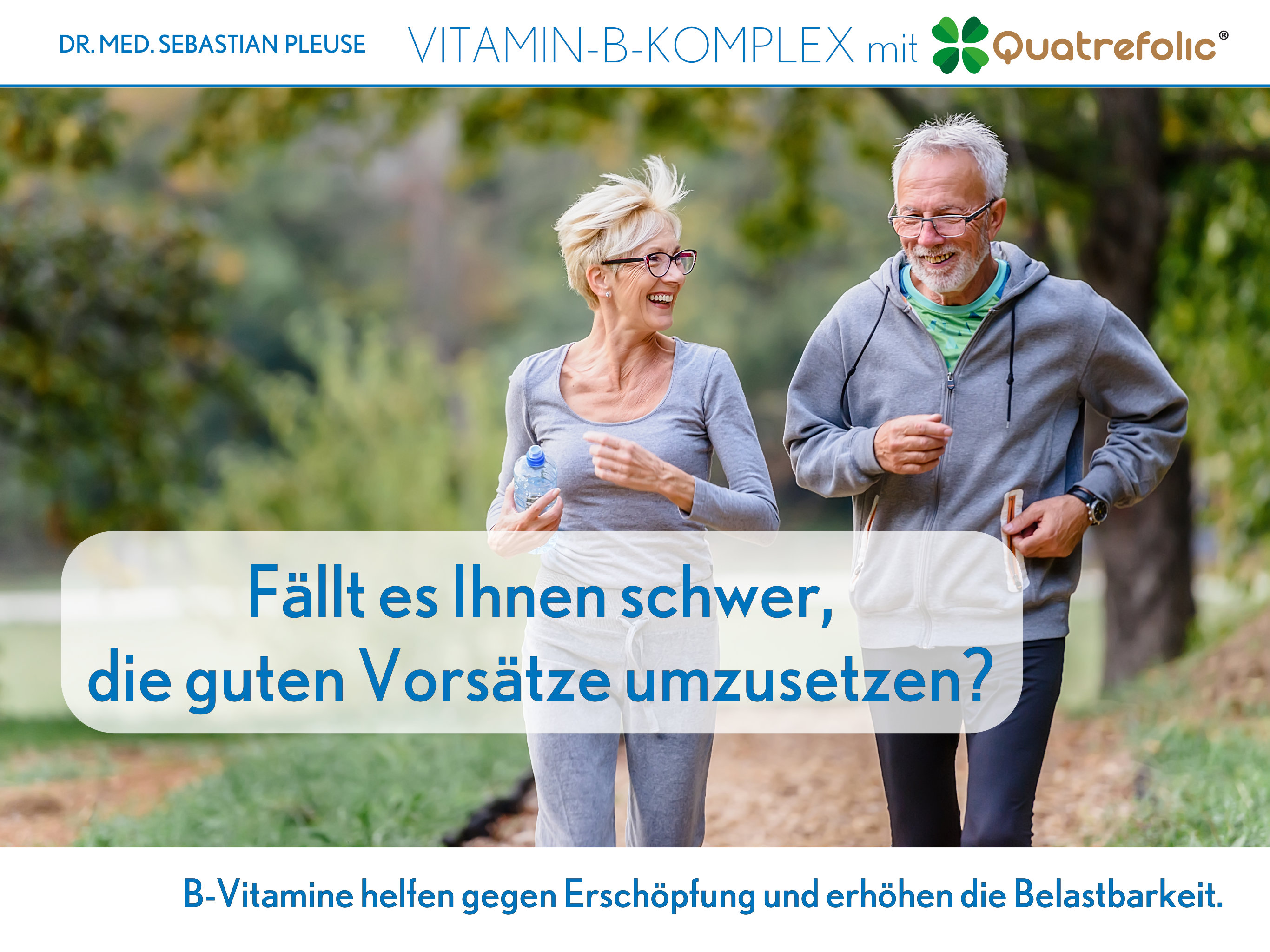 Der Vitamin-B-Komplex mit Quatrefolic® von Dr. med. Sebastian Pleuse basiert auf Braunhirse und enthält alle acht B-Vitamine in perfekt abgestimmter Dosierung. Bereits eine Kapsel täglich unterstützt die Versorgung mit diesen wichtigen Nährstoffen.