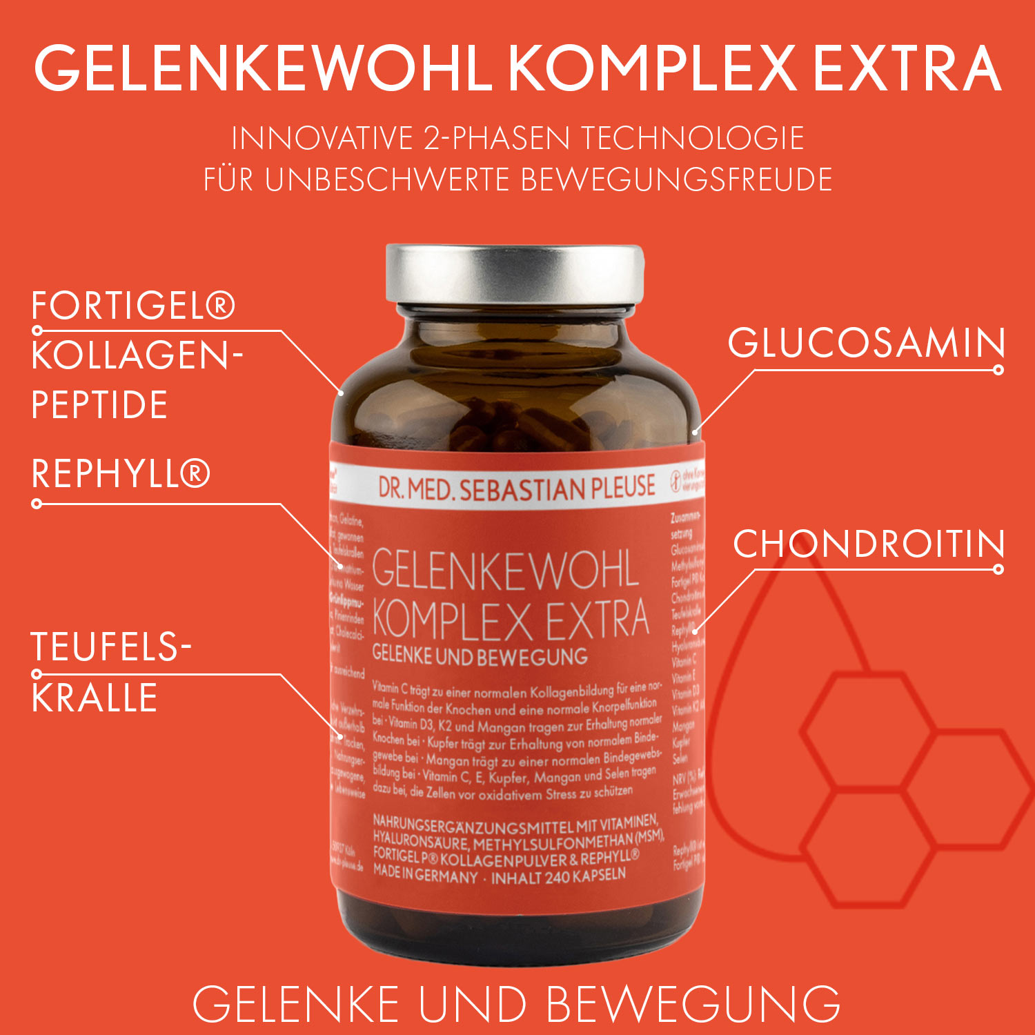 Gelenkewohl Komplex Extra für 2 Monate Ausgewählte Inhaltsstoffe für Mobilität und Wohlbefinden ✓ Made in Germany ✓ Zertifizierte Premiumqualität