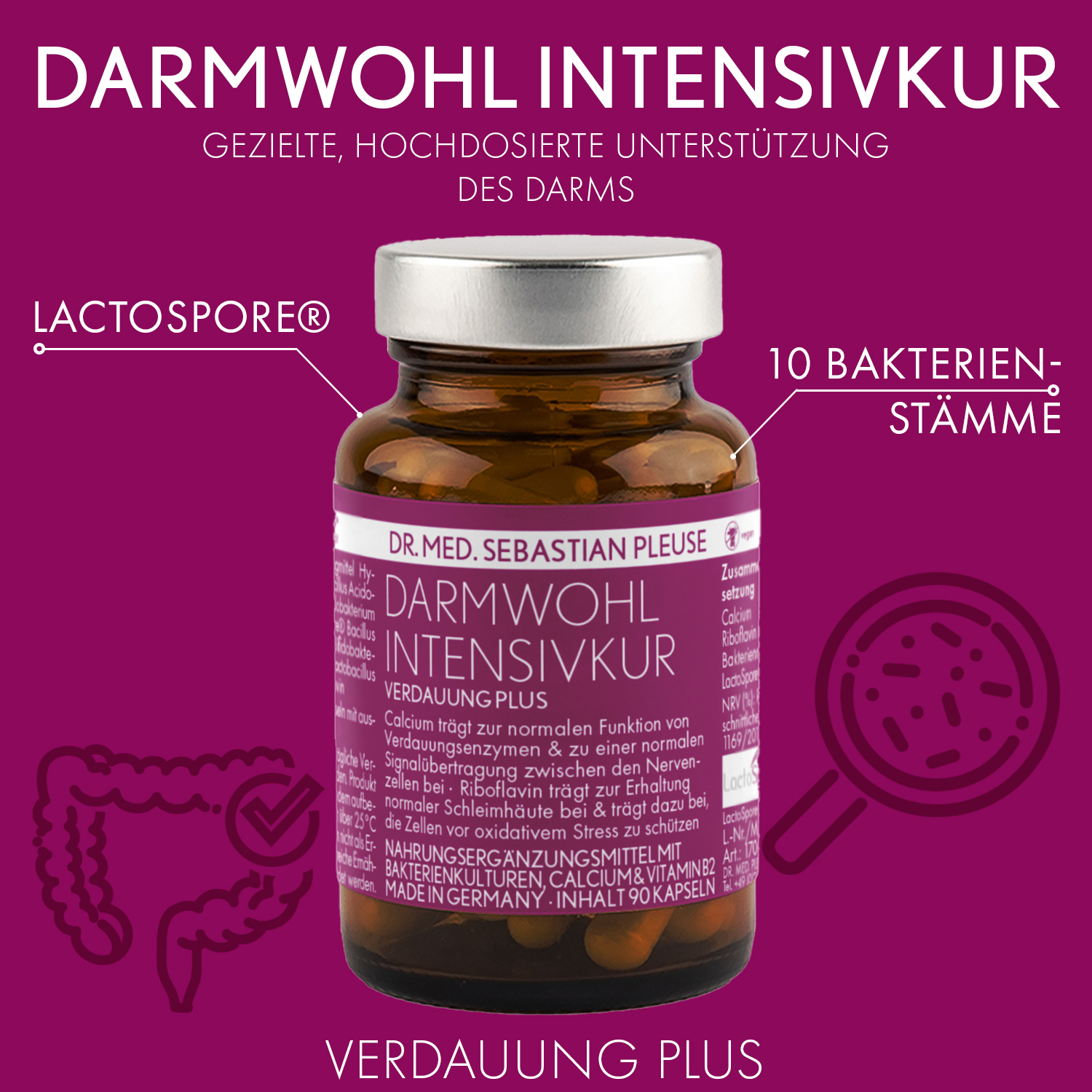 Die Intensivkur liefert eine Mischung aus zehn verschiedenen sinnvoll kombinierten guten Bakterienstämmen und enthält den Markenrohstoff LactoSpore®.